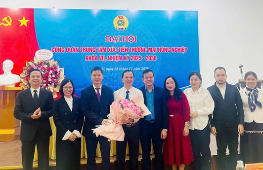 Ngày 28/11/2025, Trung tâm Xúc tiến thương mại Nông nghiệp tổ chức Đại hội Công đoàn nhiệm kỳ 2025-2030. Dự và chỉ đạo Đại hội có đồng chí Đỗ Trung Thành – Ủy viên ban Thường Vụ, Trưởng ban Quan hệ lao động Công đoàn Nông nghiệp và Môi trường Việt Nam; đồng chí Nguyễn Minh Tiến - Bí thư chi bộ, Giám đốc Trung tâm Xúc tiến thương mại Nông nghiệp.