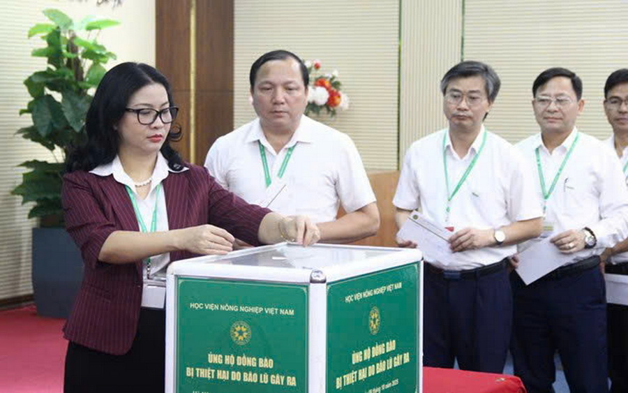 Hưởng ứng lời kêu gọi của Bộ Nông nghiệp và Môi trường và Công đoàn Nông nghiệp và Môi trường Việt Nam về việc ủng hộ đồng bào các tỉnh bị thiệt hại do bão lũ, chiều ngày 9/10/2025, Học viện Nông nghiệp Việt Nam đã tổ chức Lễ phát động quyên góp ủng hộ đồng bào vùng bão lũ với tinh thần “tương thân, tương ái”, chung tay sẻ chia cùng người dân khắc phục hậu quả thiên tai, ổn định cuộc sống và sản xuất.