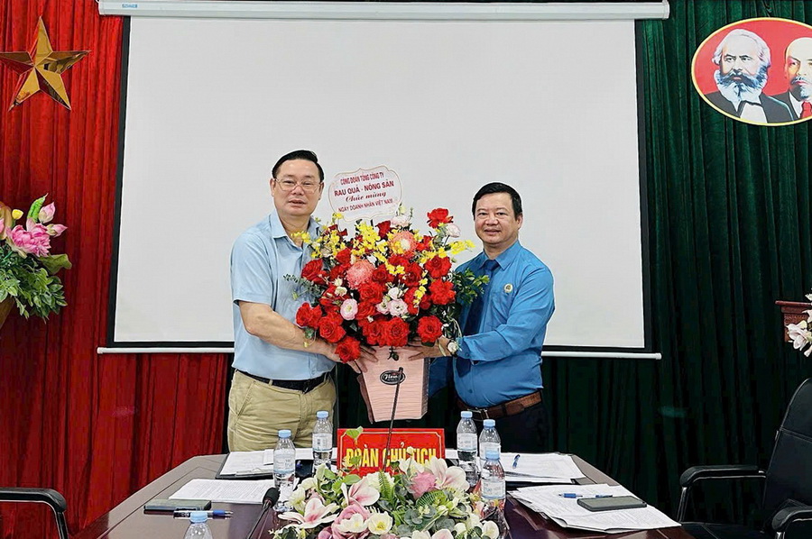 Tại Đại hội, đồng chí Lê Văn Trường đã tặng lẵng hoa chúc mừng đồng chí Vũ Ngọc Thanh nhân Ngày Doanh nhân Việt Nam (13/10).