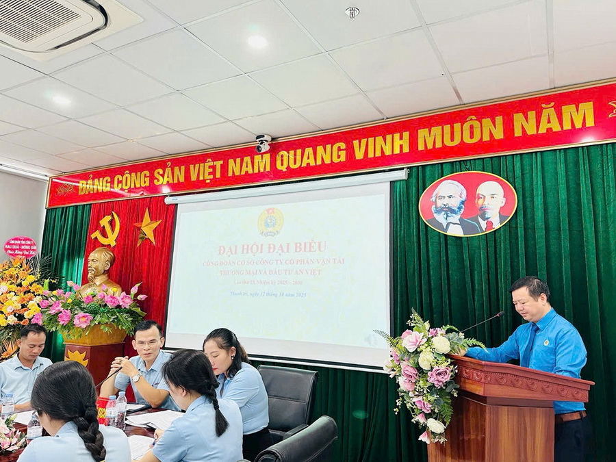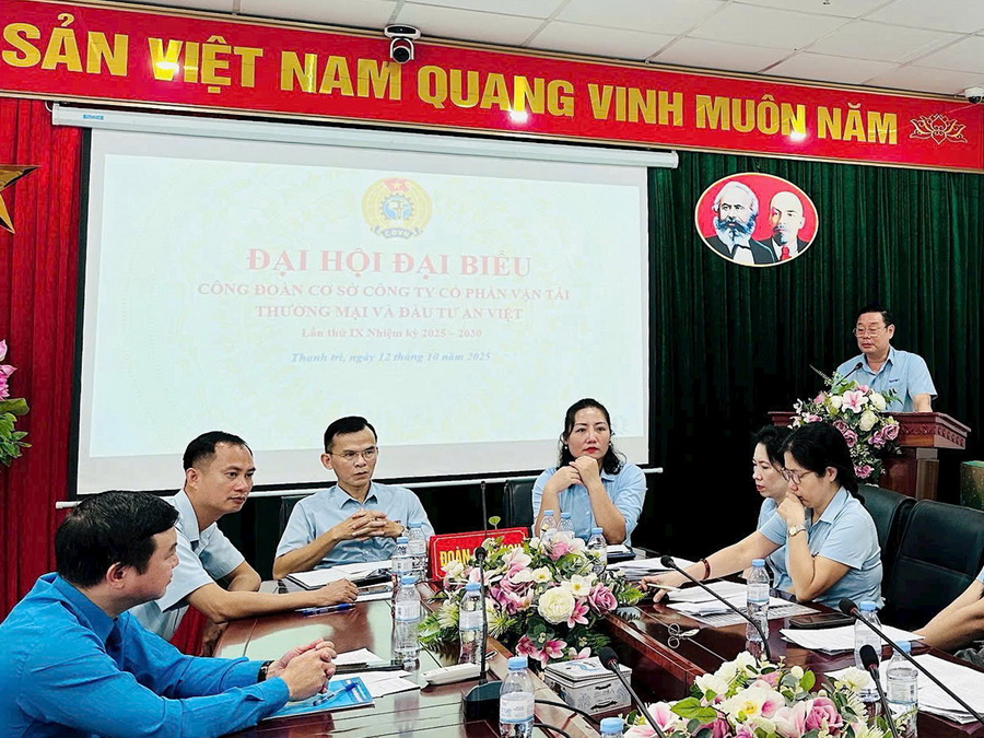 Công đoàn Tổng công ty đã hướng dẫn chỉ đạo các Công đoàn cơ sở Đại hội/Hội nghị xong trước ngày 30/10/2025 để kịp tiến độ theo chỉ đạo của Công đoàn Ngành. Ngày 12/10/2025 Công đoàn cơ sở Công ty cổ phần Vân tải thương mại và Đầu tư An Việt tổ chức Đại hội điểm để các đơn vị trong hệ thống Công đoàn Tổng công ty học tập rút kinh nghiệm.