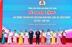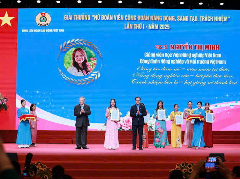 - PGS.TS Nguyễn Thị Minh, đoàn viên công đoàn, giảng viên Khoa Tài nguyên và Môi trường, Học viện Nông nghiệp Việt Nam – được trao Giải thưởng “Nữ đoàn viên Công đoàn năng động, sáng tạo, trách nhiệm” lần thứ I năm 2025.