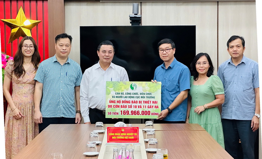 Tổng số tiền quyên góp được là 169.966.000 đồng, đồng chí Hoàng Văn Thức - Cục trưởng Cục Môi trường đã trao gửi Công đoàn Nông nghiệp và Môi trường Việt Nam để chuyển về Trung ương Mặt trận Tổ quốc Việt Nam để phân bổ, hỗ trợ cho các địa phương bị ảnh hưởng do bão lũ, đúng quy định và kịp thời.