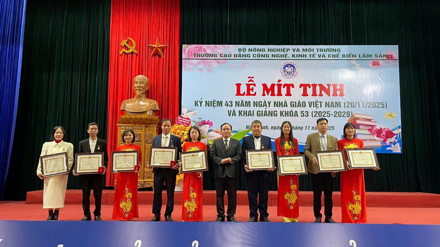 Thầy ôn lại truyền thống “Tôn sư trọng đạo” tốt đẹp của dân tộc, khẳng định vai trò quan trọng của đội ngũ nhà giáo trong sự nghiệp đào tạo nguồn nhân lực chất lượng cao cho ngành lâm nghiệp và các lĩnh vực kinh tế - kỹ thuật. Nhà trường gửi lời cảm ơn sâu sắc tới các thế hệ thầy cô đã đóng góp công sức, trí tuệ cho sự phát triển của Trường suốt hơn nửa thế kỷ qua. Nhân dịp này, Nhà trường cũng tuyên dương nhiều tập thể và cá nhân có thành tích xuất sắc trong giảng dạy, nghiên cứu khoa học và đổi mới phương pháp giáo dục năm học 2024-2025 và trao kỷ niệm chương cho các nhà giáo.