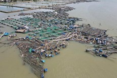 Cảnh tượng tan hoang, san phẳng hàng ngàn ô lồng bè nuôi trồng thủy sản của người dân tỉnh Đắk Lắk sau cơn bão số 13 đi qua vào tháng 11/2025. Ước tính thiệt hại vô cùng nặng nề về kinh tế, ảnh hưởng trực tiếp đến sinh kế của hàng ngàn hộ dân. Ảnh: Tuấn Anh.