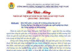Hướng tới kỷ niệm 43 năm ngày Nhà giáo Việt Nam (20/11/1982 – 20/11/2025) và 80 năm Ngày truyền thống ngành Nông nghiệp và Môi trường (14/11/1945 – 14/11/2025)...