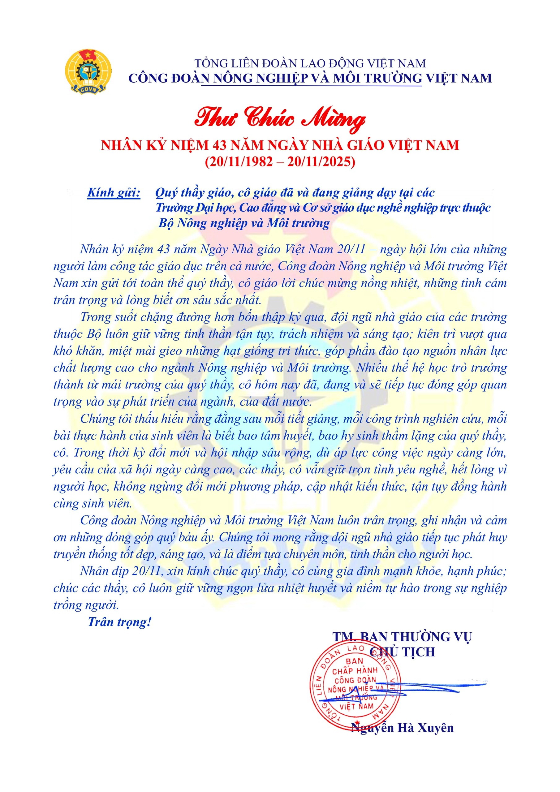 Chịu trách nhiệm nội dung: Công đoàn Nông nghiệp và Môi trường Việt Nam
