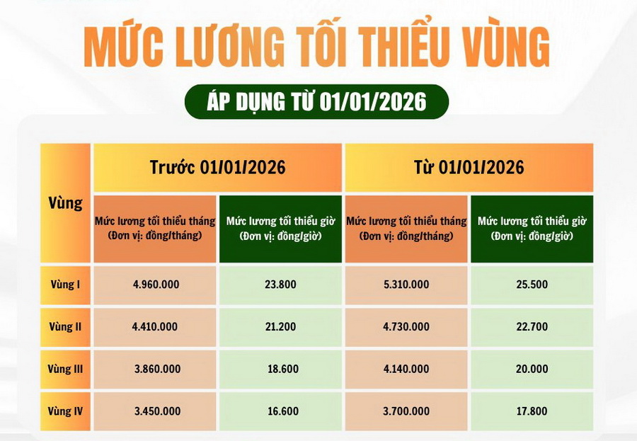 Quy định về mức lương tối thiểu vùng từ 01/01/2026 với người lao động làm việc theo hợp đồng lao động