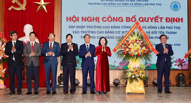 Ngày 29/1, Trường Cao đẳng Cơ điện và Nông lâm Phú Thọ (xã Thanh Ba, tỉnh Phú Thọ), Bộ Nông nghiệp và Môi trường tổ chức Hội nghị công bố quyết định sáp nhập nguyên trạng Trường Cao đẳng Công nghệ và Nông lâm Phú Thọ vào Trường Cao đẳng Cơ điện Phú Thọ và đổi tên thành Trường Cao đẳng Cơ điện và Nông lâm Phú Thọ.