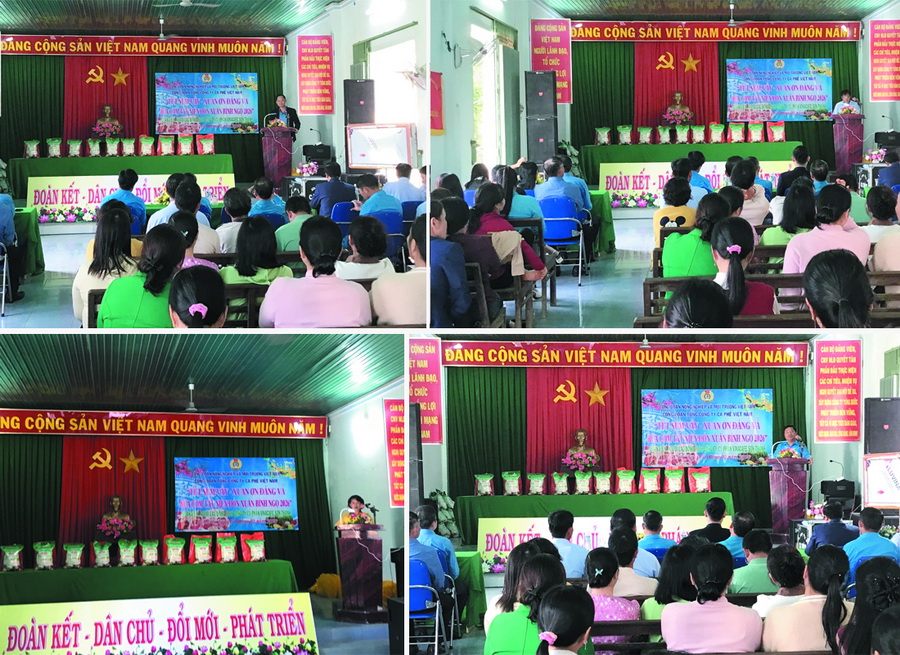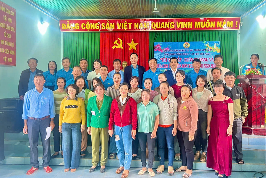 Nhân dịp này, Công đoàn Tổng công ty Cà phê Việt Nam đã chỉ đạo các đơn vị trực thuộc triển khai đồng bộ công tác chăm lo Tết cho công nhân lao động, đoàn viên có hoàn cảnh khó khăn. Công đoàn Tổng công ty đã trích kinh phí hỗ trợ 225 suất quà trị giá 112.500.000 đồng và 70 suất quà trị giá 70 triệu đồng; cùng với 150 suất quà trị giá 150 triệu đồng của Công đoàn Nông nghiệp và Môi trường Việt Nam, tổng kinh phí hỗ trợ là 332.500.000 đồng. Bên cạnh đó, các Công đoàn cơ sở phối hợp với lãnh đạo doanh nghiệp trao tặng hàng trăm suất quà Tết, bảo đảm mọi đoàn viên, người lao động đều được đón Tết vui tươi, đầm ấm.