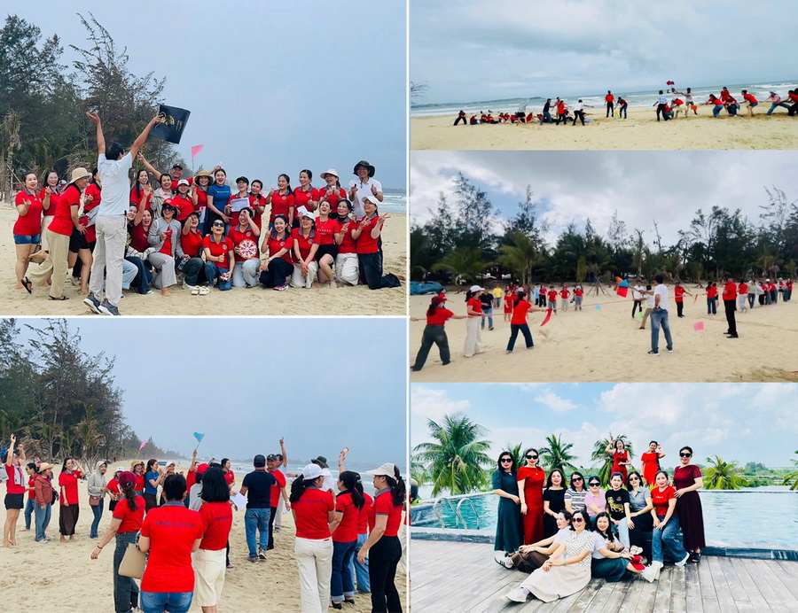 Đặc biệt, trong ngày 8/3, Công đoàn nhà trường đã tổ chức chuyến dã ngoại cho chị em tại Cocoland River Beach Resort & Spa và bãi biển Mỹ Khê. Tại đây, nhiều trò chơi tập thể sôi nổi đã được tổ chức trên bãi biển, thu hút sự tham gia nhiệt tình của các đoàn viên nữ, tạo nên không khí đoàn kết, vui tươi và gắn bó.