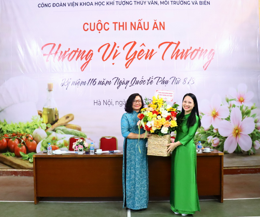 Trước khi vào Hội thi Đồng chí Phan Thị Huệ, Phó Chủ tịch Công đoàn Nông nghiệp và Môi trường Việt Nam đã trao quyết định thành lập Công đoàn Viện Khoa học Khí tượng Thủy văn, Môi trường và Biển và tặng hoa chúc mừng.